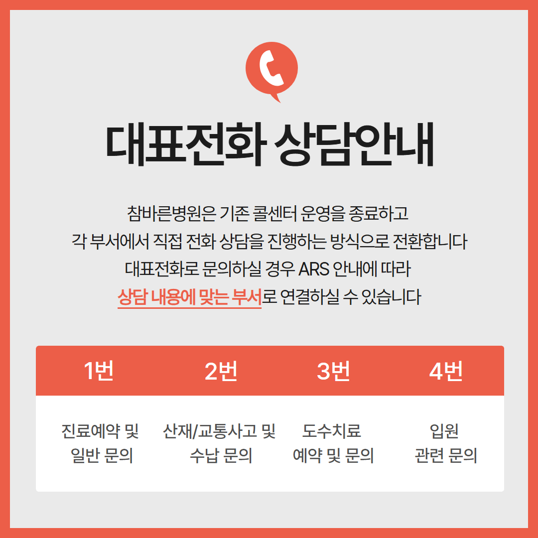 참바른병원 대표전화 상담(ARS) 안내